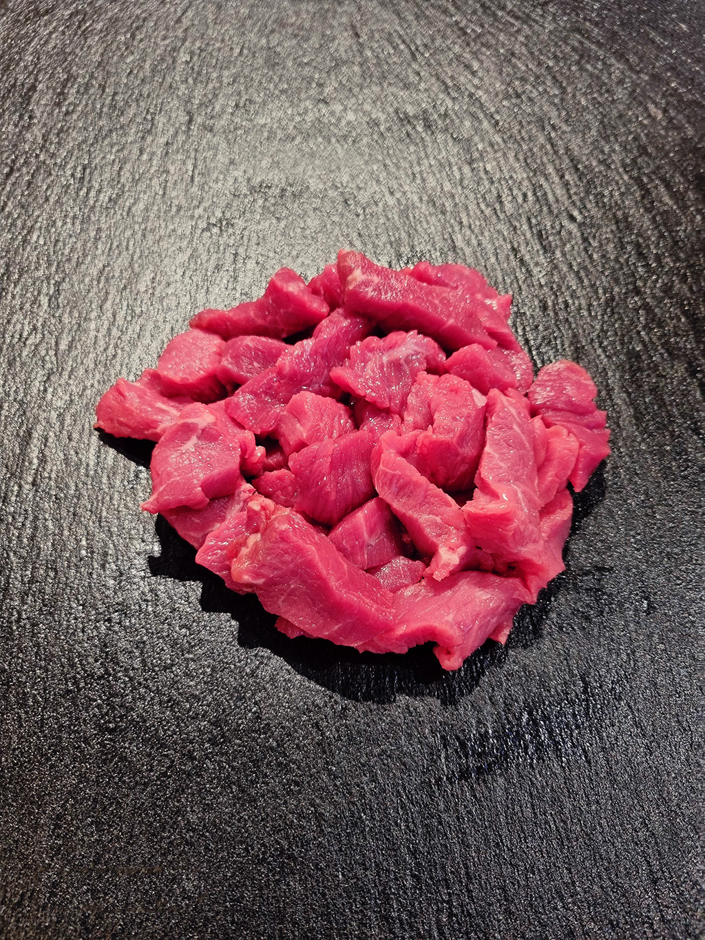 In mehreren Kleinportionen ca. 0.5 Min. anbraten und auf die Seite legen. Dann Sauce fertig zubereiten und am Schluss Fleisch für 0.5 Min. unter Sauce mischen.